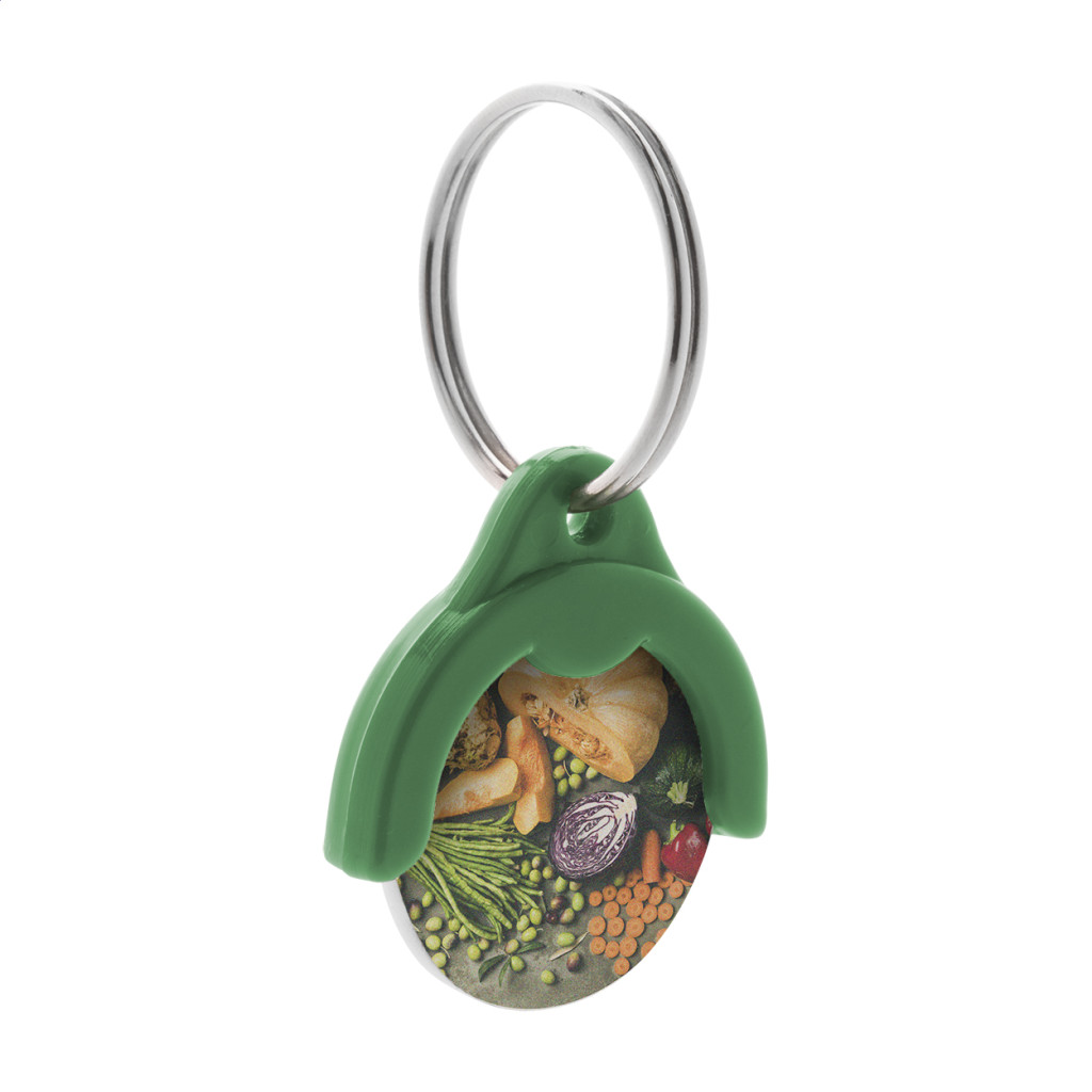 A token kulcstartós bevásárlókocsi érme anyaga strapabíró műanyag, mérete pedig szabványos, ø29 mm átmérőjű. Az ár tartalmazza az 1 oldalon történő UV LED eljárási költséget, amely garantálja a logó vagy grafika éles és tartós megjelenését. A full colour emblémázás lehetővé teszi, hogy a legkülönfélébb színekben és részletességgel jelenítse meg márkája arculatát.